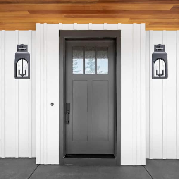 • Black outdoor wall lantern is weather resistant