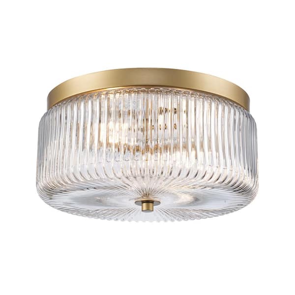 Quartz Quarters 11.75 in. 2-Light Gold Flush Mount Ceiling Light with Clear Reeded Glass Shade