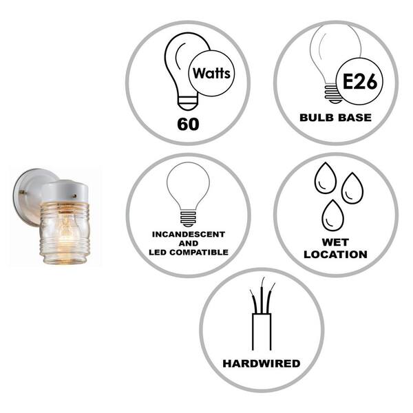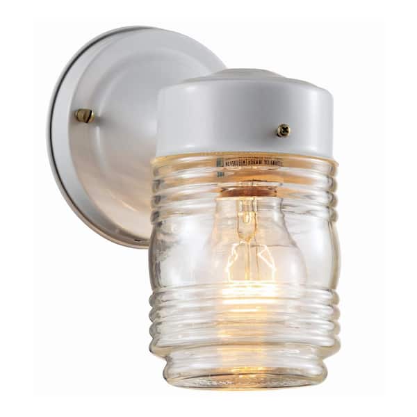 Quinn 1-Light White Outdoor Wall Light Fixture with Clear Glass