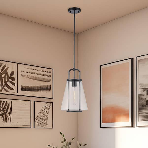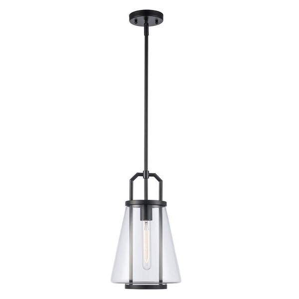 River 8.75 in. 1-Light Black Pendant Light Fixture with Clear Glass Shade