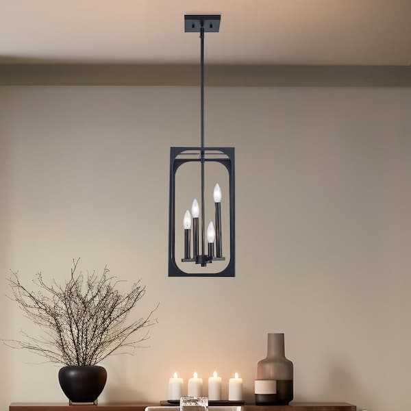 Ruby Ridge 9.25 in. 4-Light Black Hanging Chandelier Light Fixture