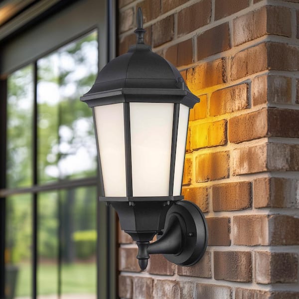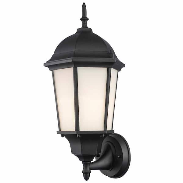 San Rafael 16.5 in. 1-Light Black Outdoor Hardwired Wall Coach Sconce with No Bulbs Included and Frosted Glass