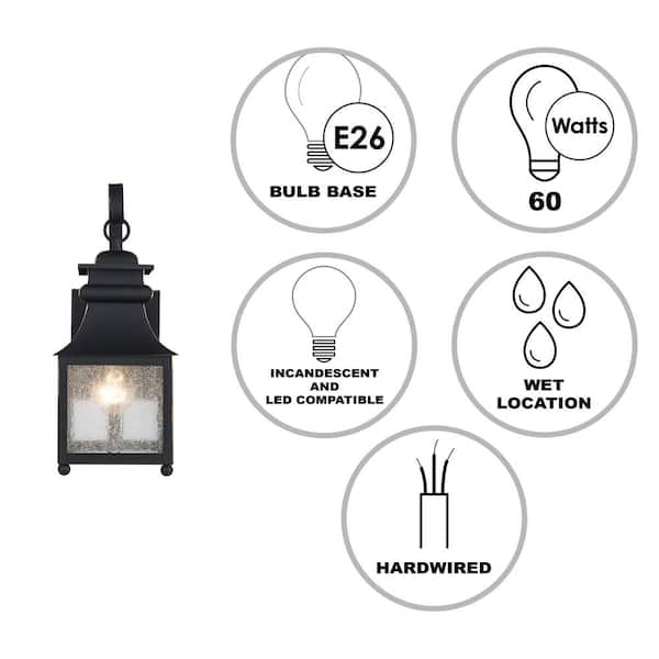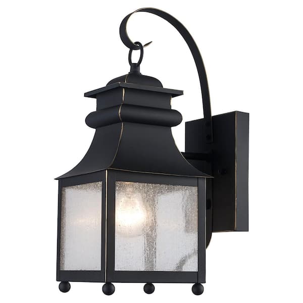 Santa Ines 1-Light Weathered Bronze Outdoor Wall Light Fixture with Seeded Glass