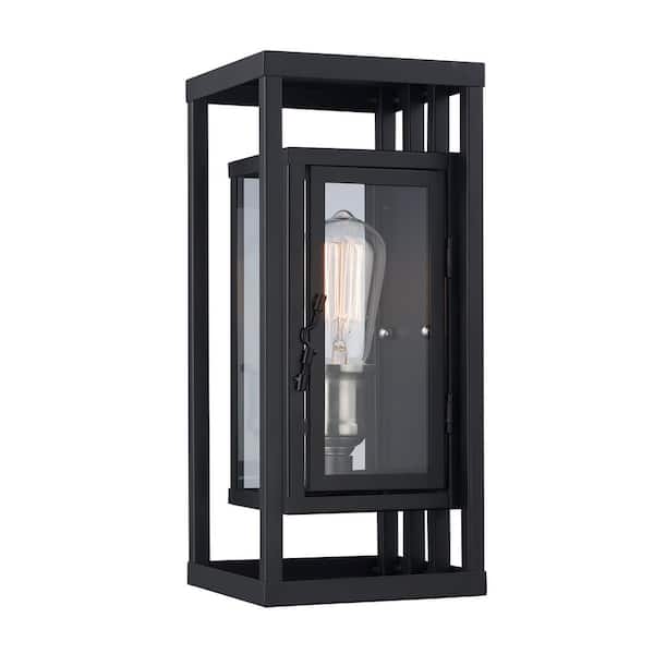 Showcase 13 in. 1-Light Black and Brushed Nickel Outdoor Wall Light Fixture with Clear Glass