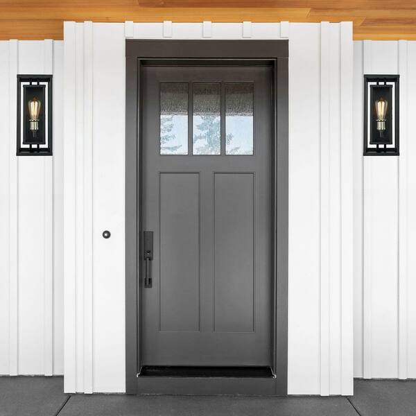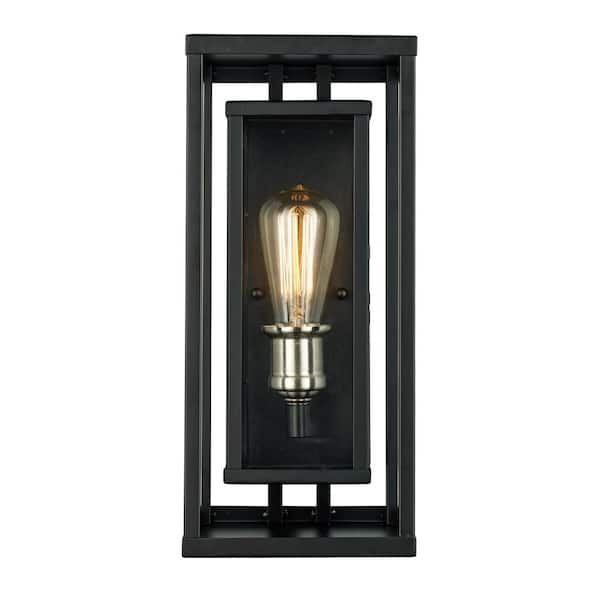 Showcase 15.5 in. 1-Light Black and Brushed Nickel Outdoor Wall Light Fixture with Clear Glass