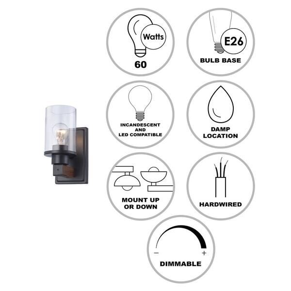 Siesta 1-Light Oil Rubbed Bronze and Faux Wood Indoor Wall Sconce Light Fixture with Seeded Glass
