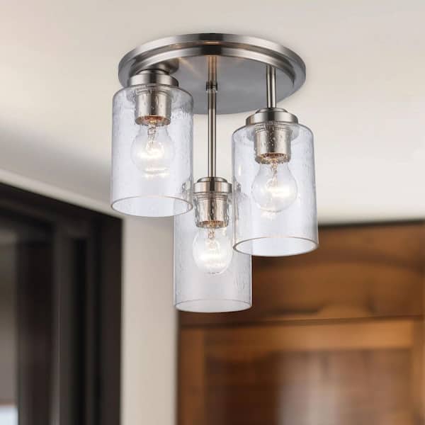 Simi 11 in. 3-Light Brushed Nickel Semi-Flush Mount Ceiling Light with Clear Seeded Glass Shades