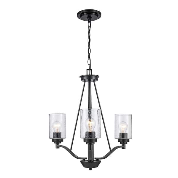 Simi 3-Light Black Chandelier Light Fixture with Seeded Glass Shades