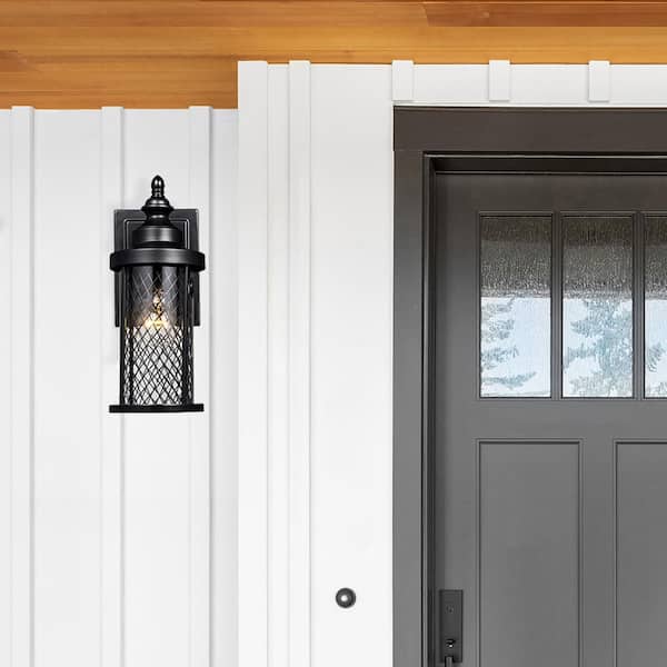 Stewart 16 in. 1-Light Black Outdoor Wall Light Fixture with Mesh Frame and Clear Glass
