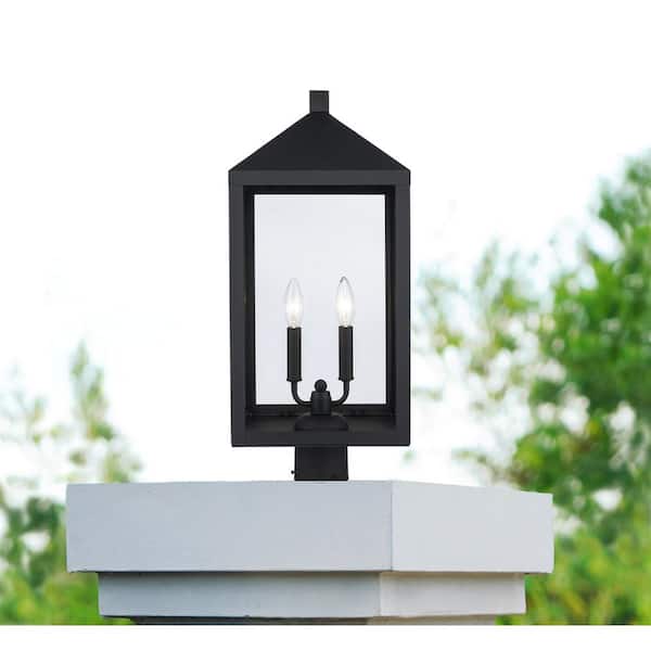 Storm 23 in. 2-Light Black Metal Hardwired Outdoor Lamp Post Light Fixture with Clear Glass