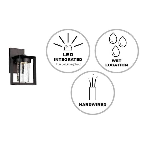 Taylor 9.5 in. Black Integrated LED Outdoor Wall Light Fixture with Seeded Glass