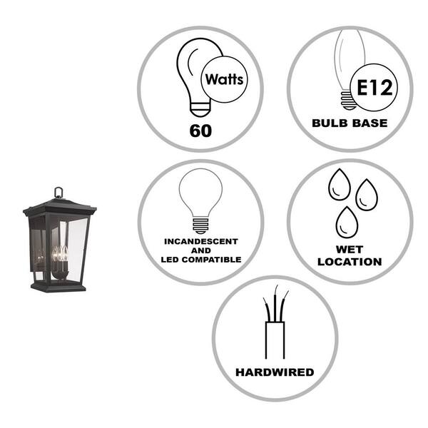 • Uses (3) 60W E12 incandescent or LED light bulbs, not included