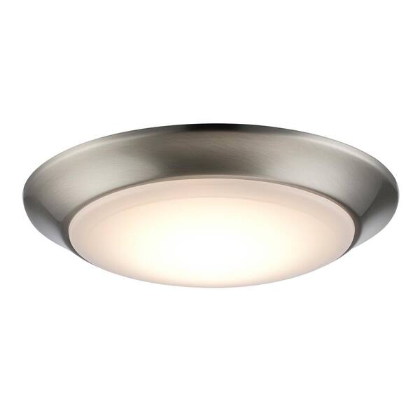 Vanowen 7.5 in. Brushed Nickel Integrated LED Miniature Disk Flush Mount Ceiling Light Fixture with Acrylic Shade