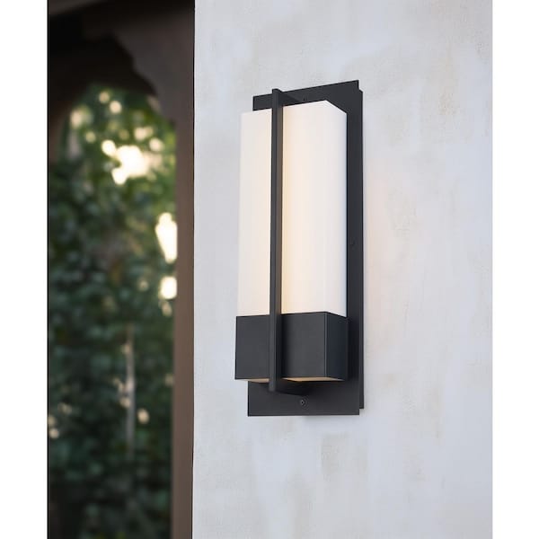 Venue 20 in. Black Integrated LED Outdoor Wall Light Fixture with Acrylic Shade