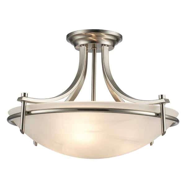 Vitalian 21 in. 3-Light Brushed Nickel Semi-Flush Mount Ceiling Light Fixture with Marbleized Glass Shade