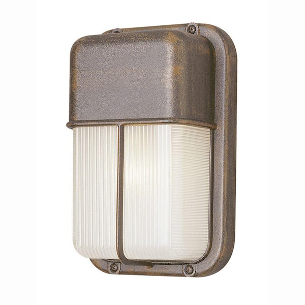Well 10 in. 1-Light Rust Rectangular Bulkhead Outdoor Wall Light Fixture with Ribbed Acrylic