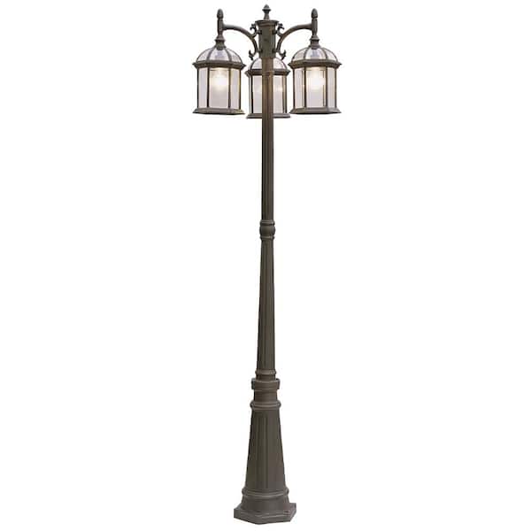 Wentworth 79 in. 3-Light Rust Brown Metal Hardwired Outdoor Weather Resistant Lamp Post Light Set with No Bulbs Included