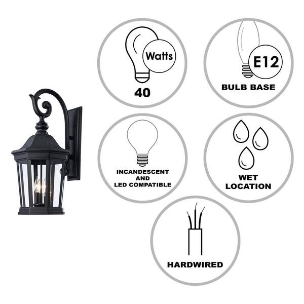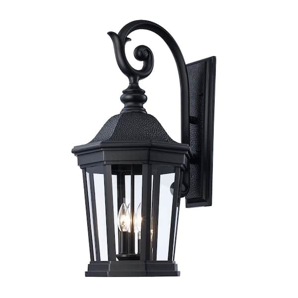 Westfield 26 in. 3-Light Black Outdoor Wall Light Fixture with Clear Glass