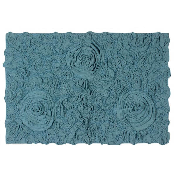 Bell Flower Collection 100% Cotton Tufted Bath Rugs, 21 in. x34 in. Rectangle, Blue