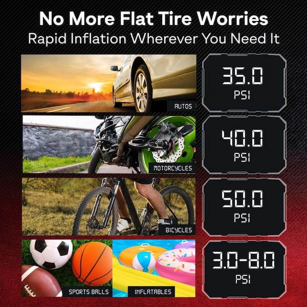• Built-in digital pressure gauge ensures precise inflation