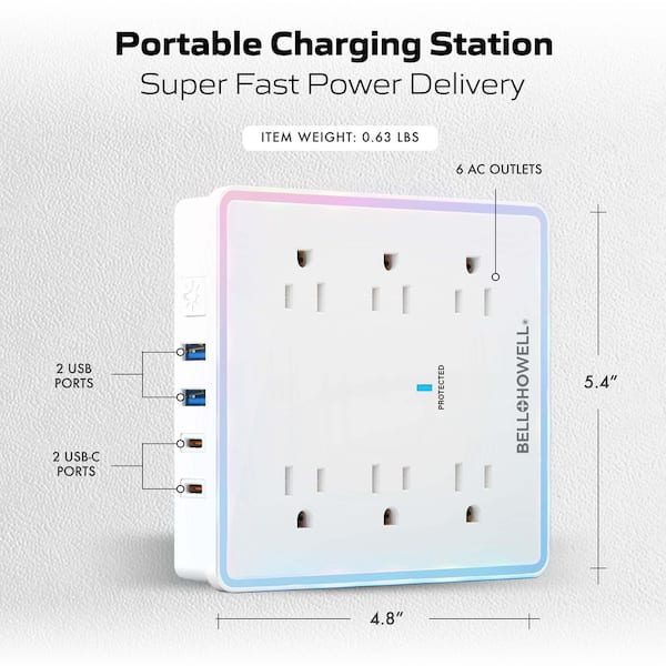 • Includes 10 charging ports, 2 USB-A, 2 USB-C, 6 AC Outlets