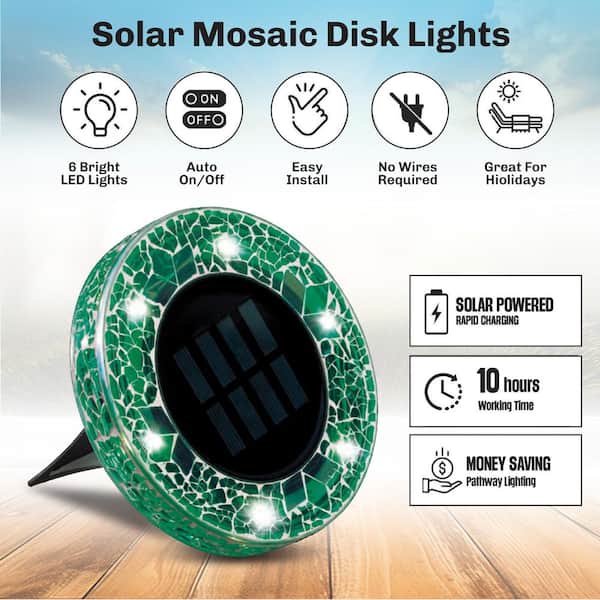 Mosaic Disk Lights Green Solar Powered LED Weather Resistant Path Lights with Mosaic Glass Top (4-Pack)