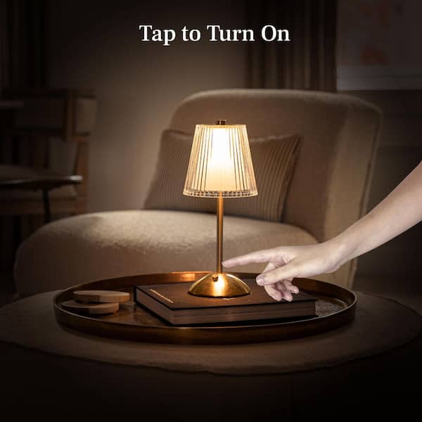 The Aurora 11.6 in. Brushed Gold Modern Rechargeable Integrated LED Table Lamp with USB Port