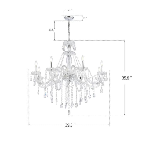 Bella 8-Light Chrome French Style Chandelier for Living Room with Clear Crystal Accents No Bulbs Included
