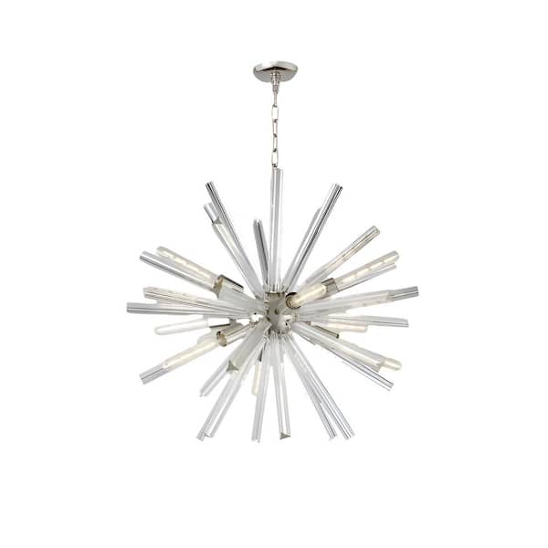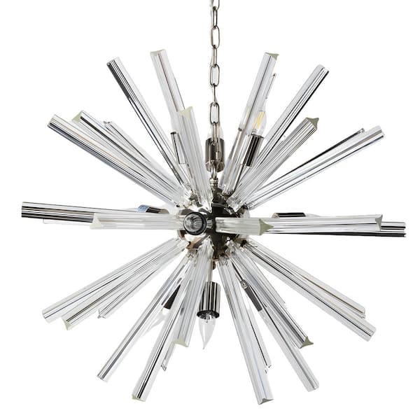 Bella 9-Light Silver Sputnik Sphere Chandelier for Living Room with Clear Glass Accents No Bulbs Included