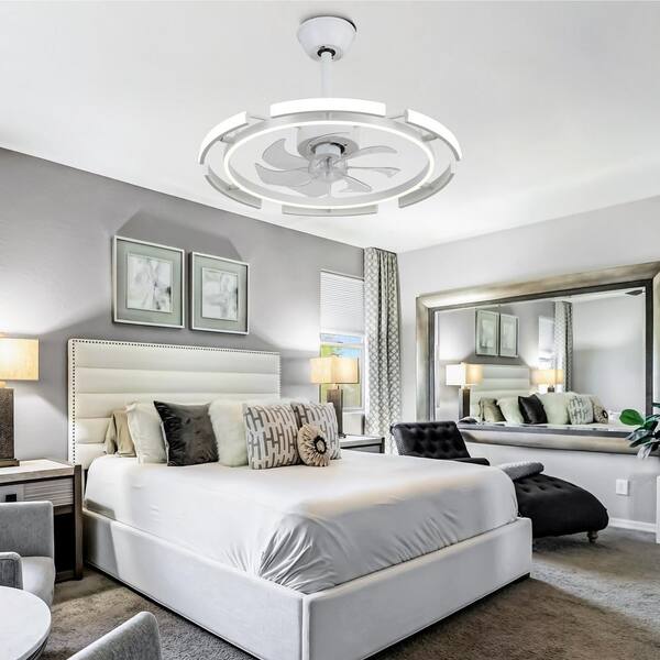 24 in. Indoor DIY Shade White Dimmable Ceiling Fan with LED Light and Remote
