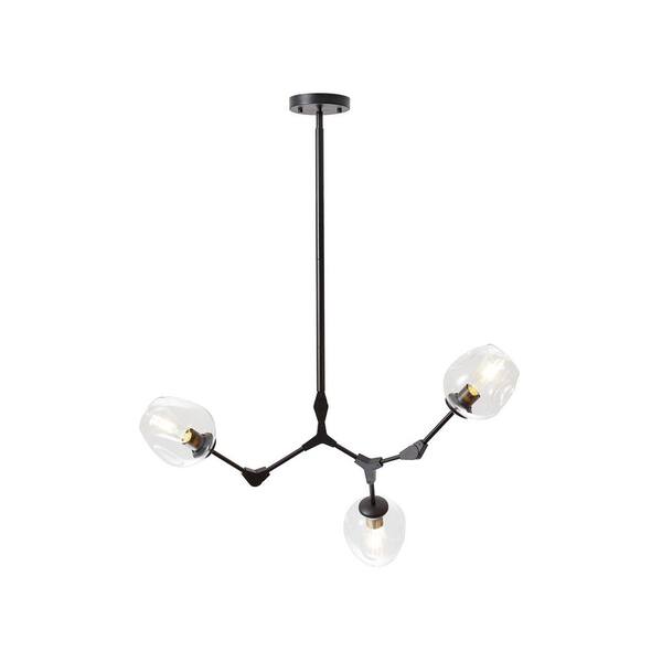 3-Light Clear Modern Linear Chandelier with Black Adjustable Arms and Glass Shades