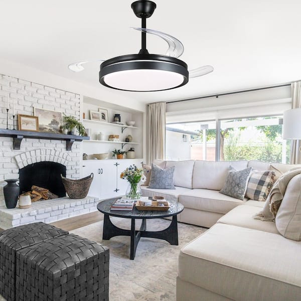 42 in. Indoor LED Black Retractable Blades Ceiling Fan with Dimmable Light and Remote 6-Speed Reversible Fandelier