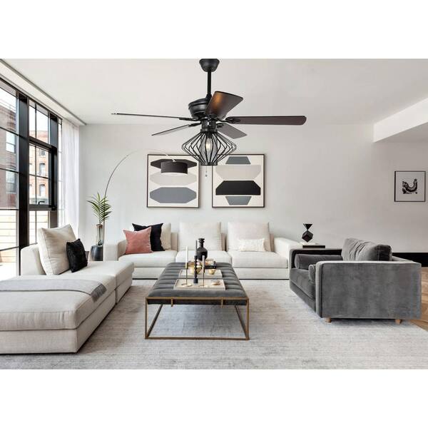 52 in. Black Cage Ceiling Fan with Light Kit and Remote Control