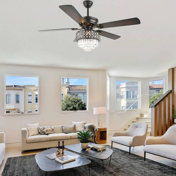 52 in. Indoor Black Finish Modern Crystal Ceiling Fan with Light Kit and Remote