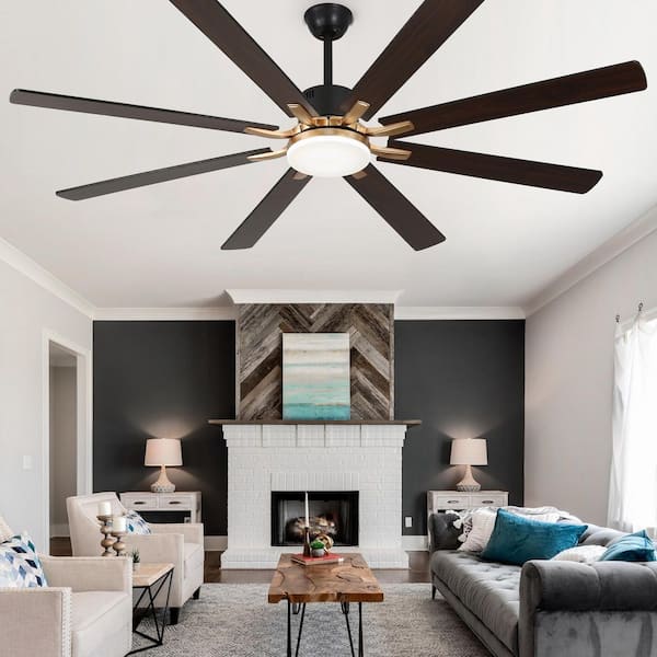 72 in. Indoor Matte Black Standard Dimmable Ceiling Fan with LED Light and Remote, 8 Reversible Blades