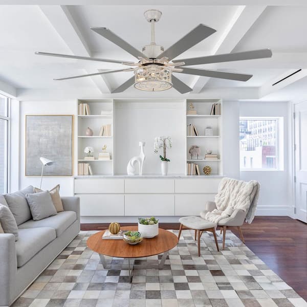 Farmhouse 72 in. Large Indoor Distressed White Reversible Ceiling Fan with Lights and Remote, 6-Speed