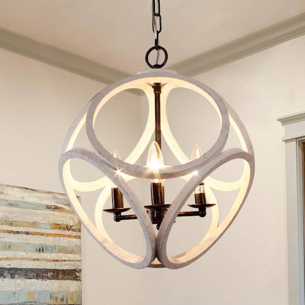 Modern 4-Light Distressed White Globe Chandelier Ceiling Light