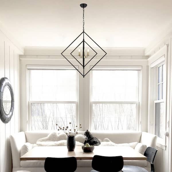 Modern 4-Light Matte Black Linear Chandelier Adjustable Chain for Kitchen Living Rooms with Light Kit