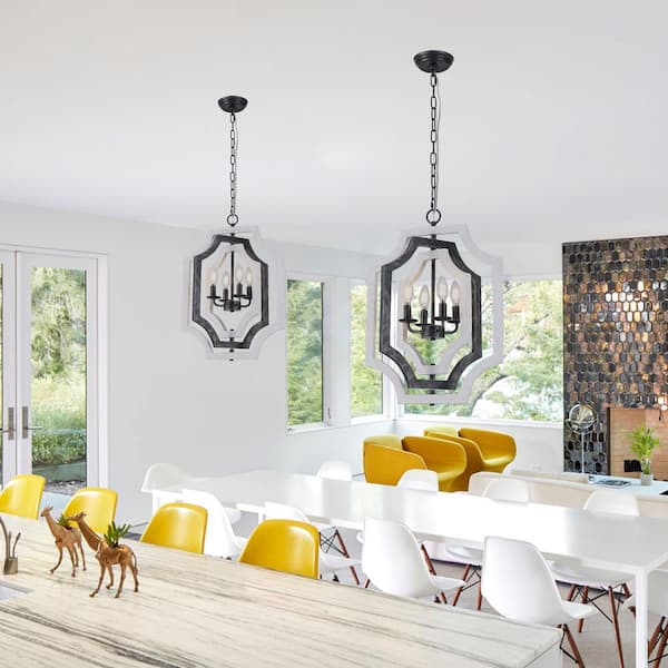 Vintage 4 Light Farmhouse Distressed White Rustic Linear Chandelier Hanging Pendant Light with Light Kit