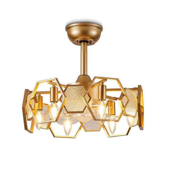 Vintlume 19 in. Indoor Gold Metal Caged Ceiling Fan with Light and Remote, 6-Speed Reversible Fan