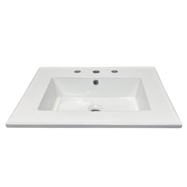 25 in. Drop-in Vitreous China Bathroom Sink Top in White with 3-Faucet Holes
