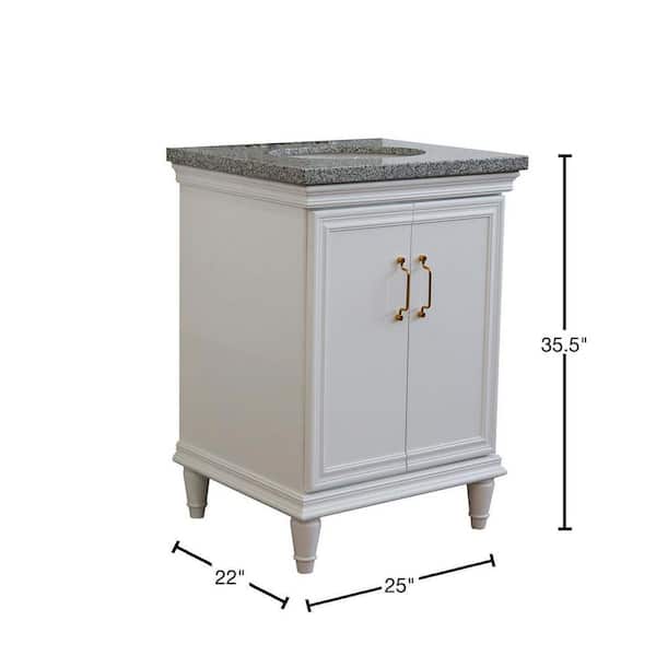 25 in. W x 22 in. D Single Bath Vanity in White with Granite Vanity Top in Gray with White Oval Basin