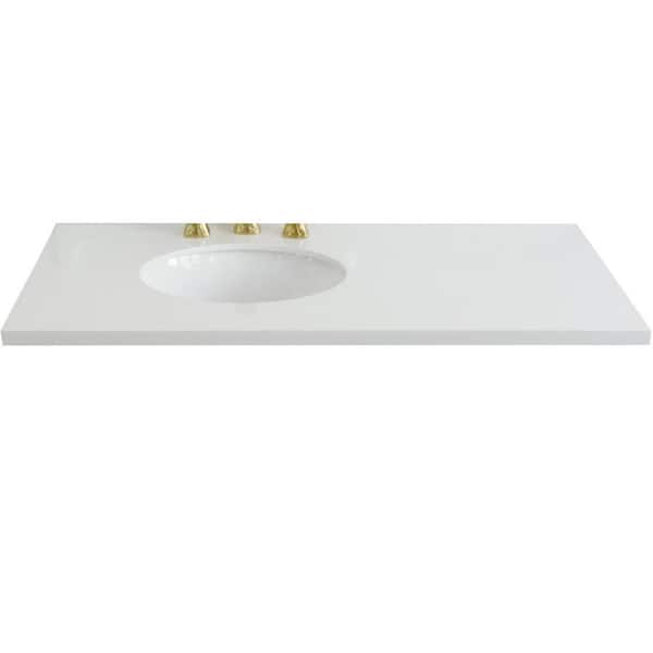 43 in. W x 22 in. D Quartz Vanity Top in White with White Oval Left Basin