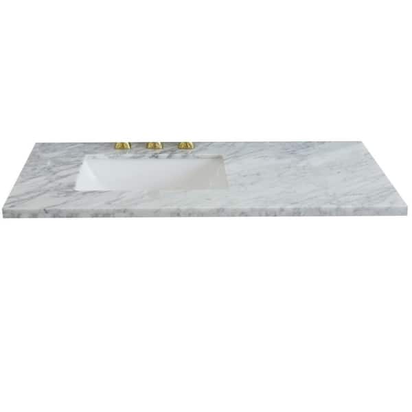 43 in. W x 22 in. D White Carrara Marble Vanity Top with Left Side Rectangular Sink