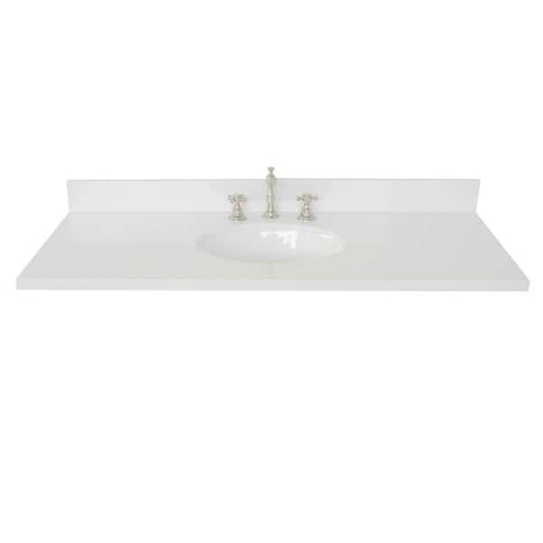 49 in. W x 22 in. D Quartz Vanity Top in White with White Oval Basin