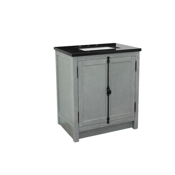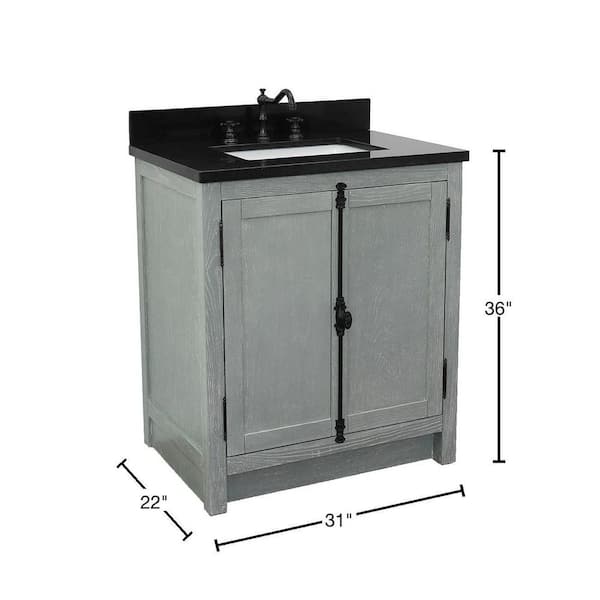 Plantation 31 in. W x 22 in. D Bath Vanity in Gray with Granite Vanity Top in Black with White Rectangle Basin