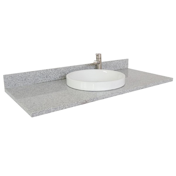 Ragusa III 49 in. W x 22 in. D Granite Single Basin Vanity Top in Gray with White Round Basin