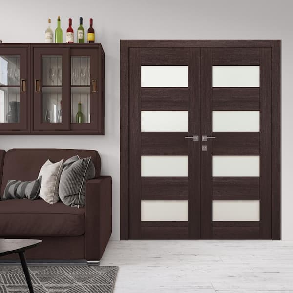 07-08 60 in. x 96 in. Right Active 4-Lite Frosted Glass Veralinga Oak Wood Composite Double Prehung Interior Door