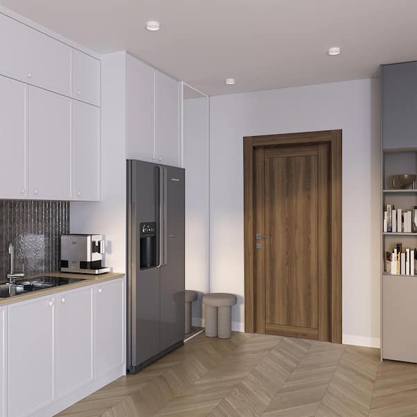 1 Panel Shaker 28 in. x 79.375 in. No Bore Pecan Nutwood Solid Composite Core Wood Interior Door Slab
