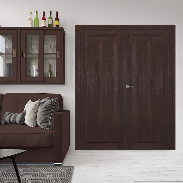 1 Panel Shaker 36 in. x 79,375 in. Right Active Veralinga Oak Wood Composite Double Prehung Interior Door